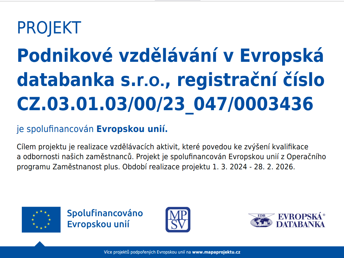 Název projektu: Podnikové vzdělávání v Evropská databanka a.s.